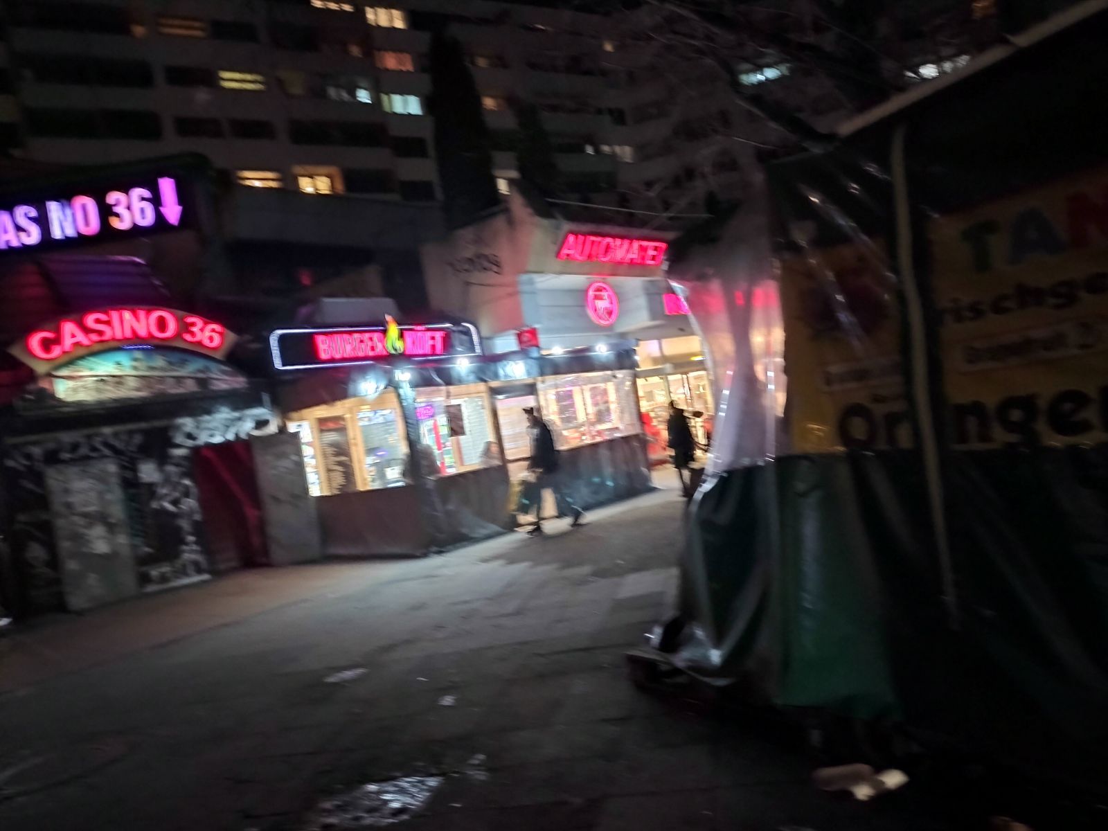 Kreuzberg(南東部のエリア。以下でも何回も述べるけどここが一番歩いてて楽しかった)であれこれ迷ったあげくバーSchmetterlingに入る。中がよく見えるバーは入りやすくていいね。はじめ1時間ぐらいは誰とも話さず人々の話し声を聞くって感じだったのだが、カウンターでショットが渡ってきたから飲んだら辛くて咳したら場が和んで、ちょっとした会話があった。隣の人とも話した。ヨーロッパ人、「来年日本行こうと思ってるんだ」って言いがち。なんかまあ日本人はめずらしいので(アジア人すらいなさそう)、いろいろ話す。だいたい鉄道とか労働環境とか政治とかその辺。『PERFECT DAYS』観たらしくてその話で盛り上がる。たまたま金融とかやってて仏語も話せるらしいが普通のドイツ人は話せないらしい。同じ3ヶ国語話者でも、英仏独と、英日タイ語とかだと全然難易度違うんだろうなと思った。つまりタイ高専生はえらい。