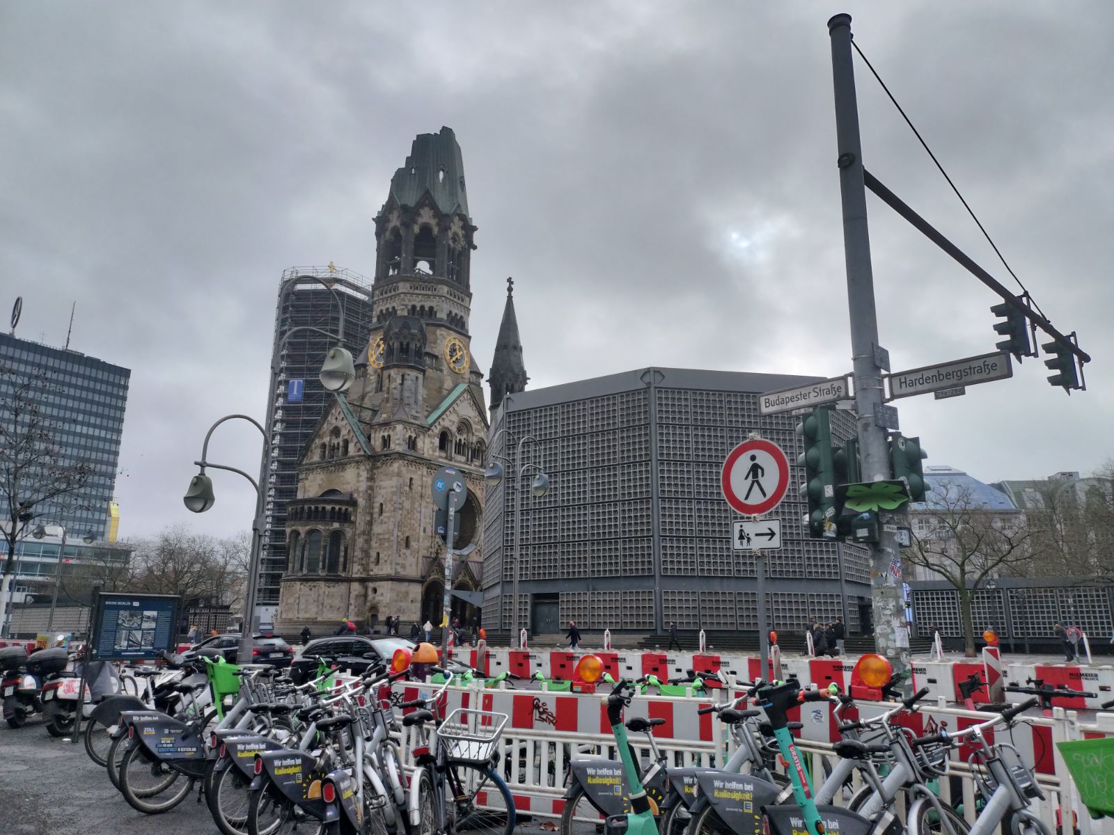 市の西側へ足を伸ばす。カイザーヴィルヘルム教会。空爆で一部損壊した建物がそのままになっている。日本でいう原爆ドームっぽい。中は普通だが、損壊前の写真を見るとあわわわわ…となる。隣接されてた新教会は内部がかっこよかった。