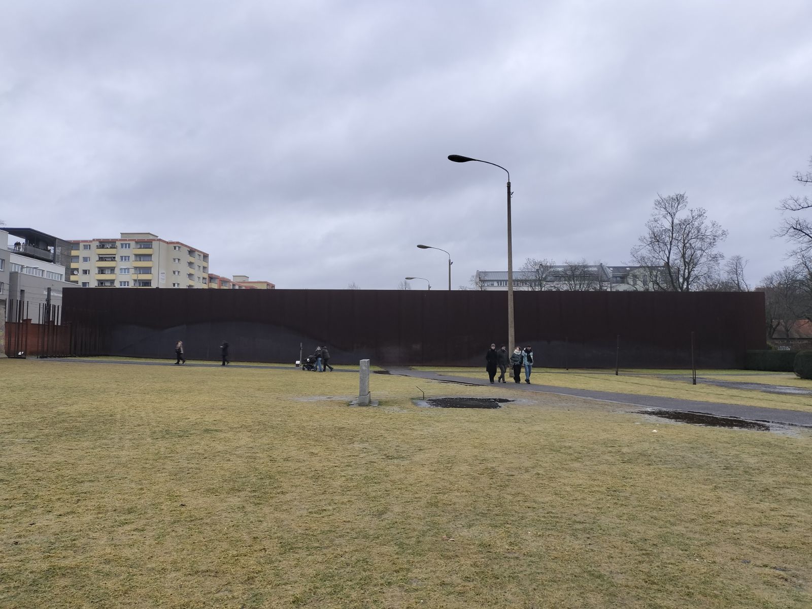 ベルリンの壁がそのまま残されている。付近の監視塔跡や、壁の拡張時に邪魔なので爆破された教会の跡地も残っている。イーストサイドギャラリーはアートで壁を作り替えているのに対して、こちらはよりそのまま負の遺産って感じである。ここにも資料館みたいなのがある。学生の集団が研修にきていた。東側から西側への地下トンネル跡の上にプレートが敷いてあって、そこを辿ったりしながら歩く。