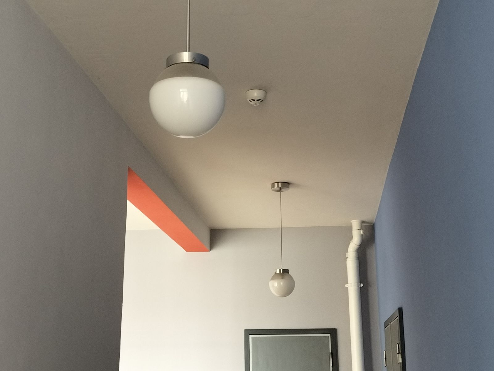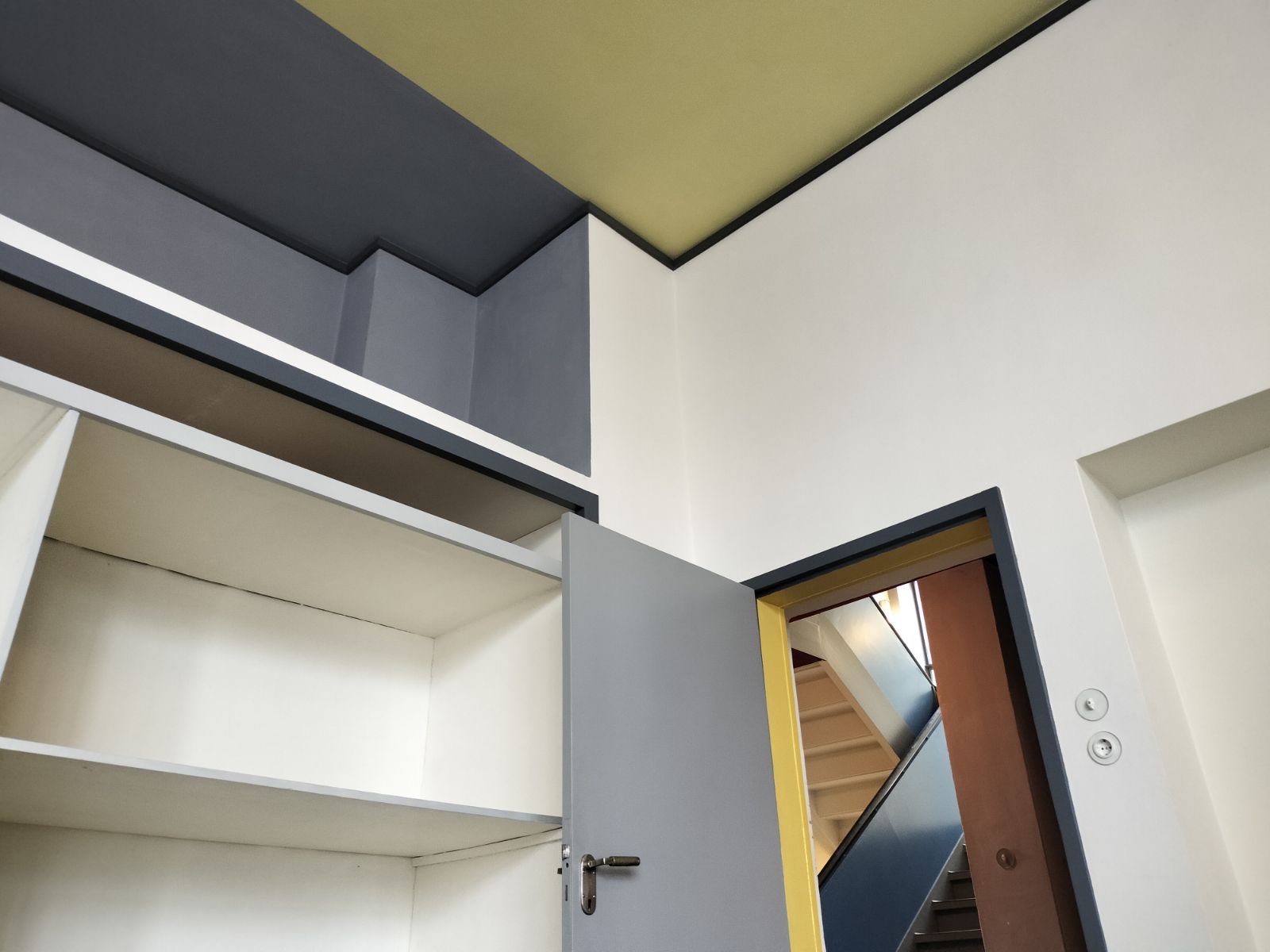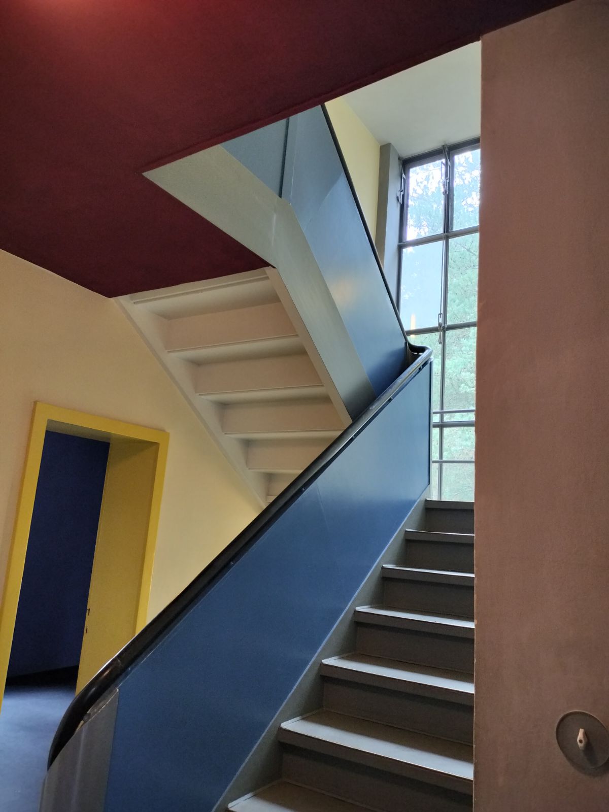 やっばりKandinskyとKleeの家がよかった。部屋をどう見てもクレーの絵になる。 階段近くの廊下がすごい。ドア開けたり閉めたり寝っ転がったりしたら全部違う絵になる。 鑑賞中に試すような気持ちが俺から自然に出てくるのがクレーの絵だと思っているんだけど、それが建物でも生じた。建築の中にいてそんな気持ちになるのは初めてだった。 天井に深い赤を塗るのがすごいぜ。灰色みたいな部屋でもよく見ると壁の色は微妙に違う。