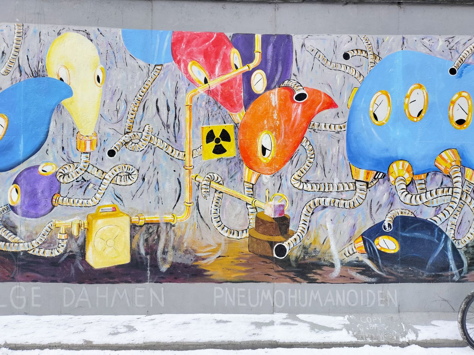 博物館島などがあるように、ハイアート(ファインアート)の美術館はたくさんある。その一方で、南側・東側は建物にいろいろ描いてあったり、あるいはEast Side Galleryのようにお金を払わない場所でもいろいろ絵とかポスターがある。ローザンヌ以上に変というか遊び心があるポスターも多い。