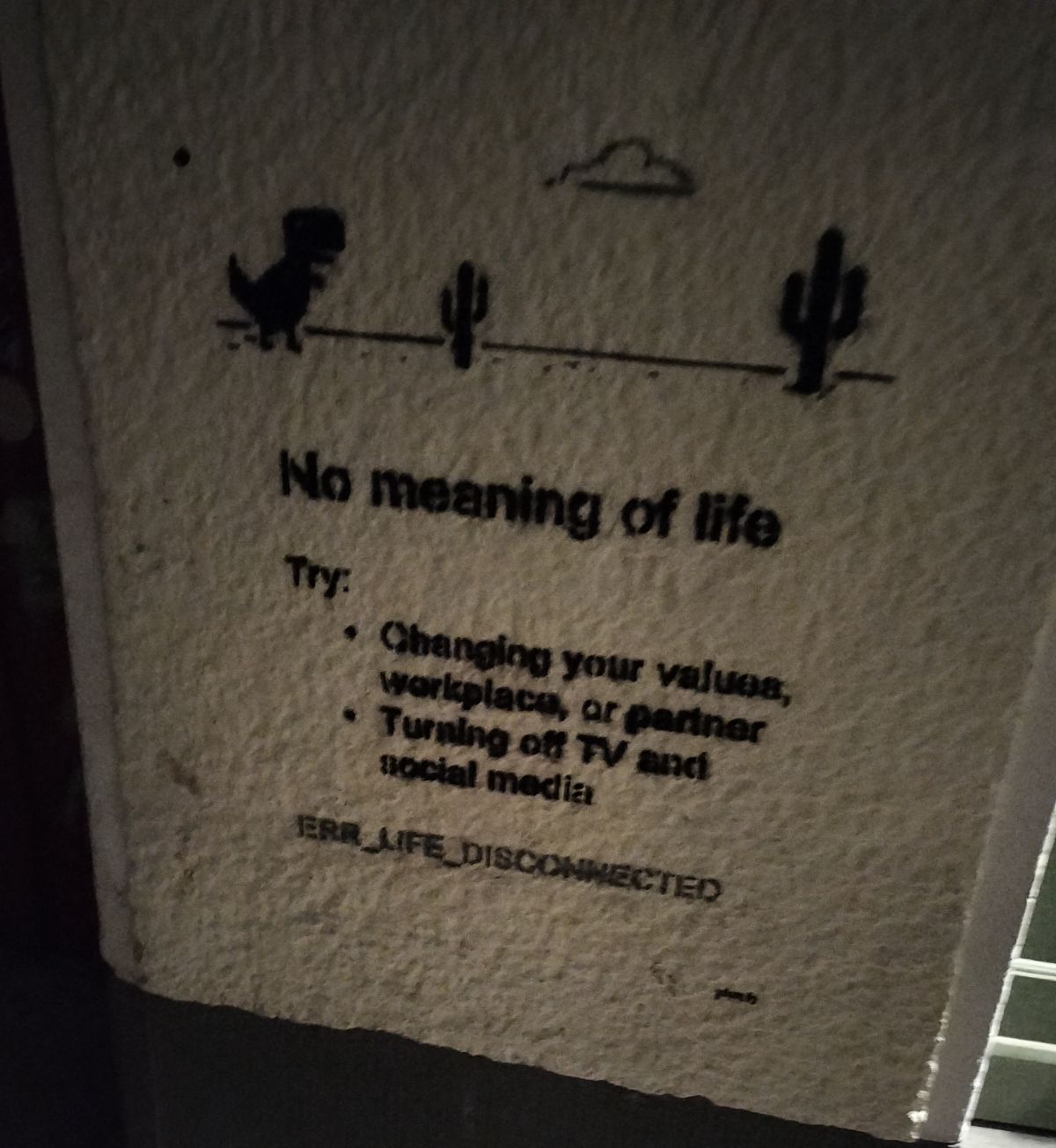 まあ急いでもしょうがないかと思って、カフェでインドア的にだらだらしてた。落書きしたりブログ草稿書いたりする。論文読もうとしたが3秒で飽きた。ホームレスが座ってる隣に真っ白なマットレスがあって、赤いスプレーでKeine Zeir für Kunst (no time for art?)って書いてあったのを覚えている。写真撮ったりはしてないが。